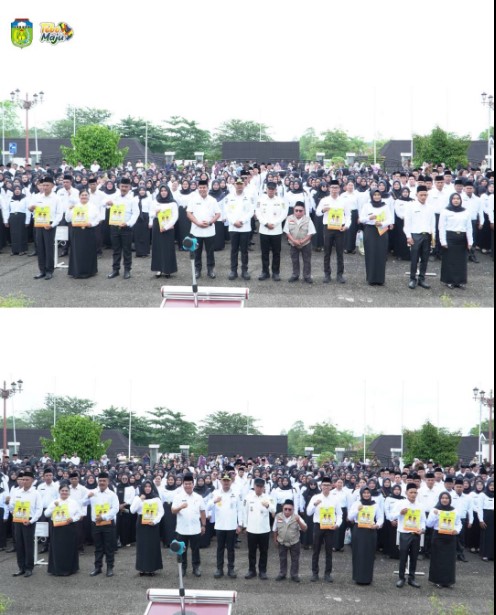 Bupati Tebo menyerahkan Surat Keputusan (SK) Pengangkatan Pegawai Pemerintah dengan Perjanjian Kerja (PPPK) Paruh Waktu Formasi Tahun 2025 kepada para penerima, yang dilaksanakan di Lapangan Kantor Bupati Tebo, Rabu (31/12/2025).